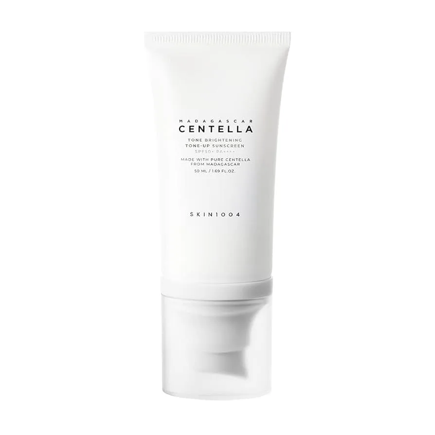 واقي شمس تون أب من سكين 1004 لحماية SPF50 وتفتيح فوري. غني بالسنتيلا، النياسيناميد وحمض الترانيكساميك لترطيب وتهدئة البشرة.