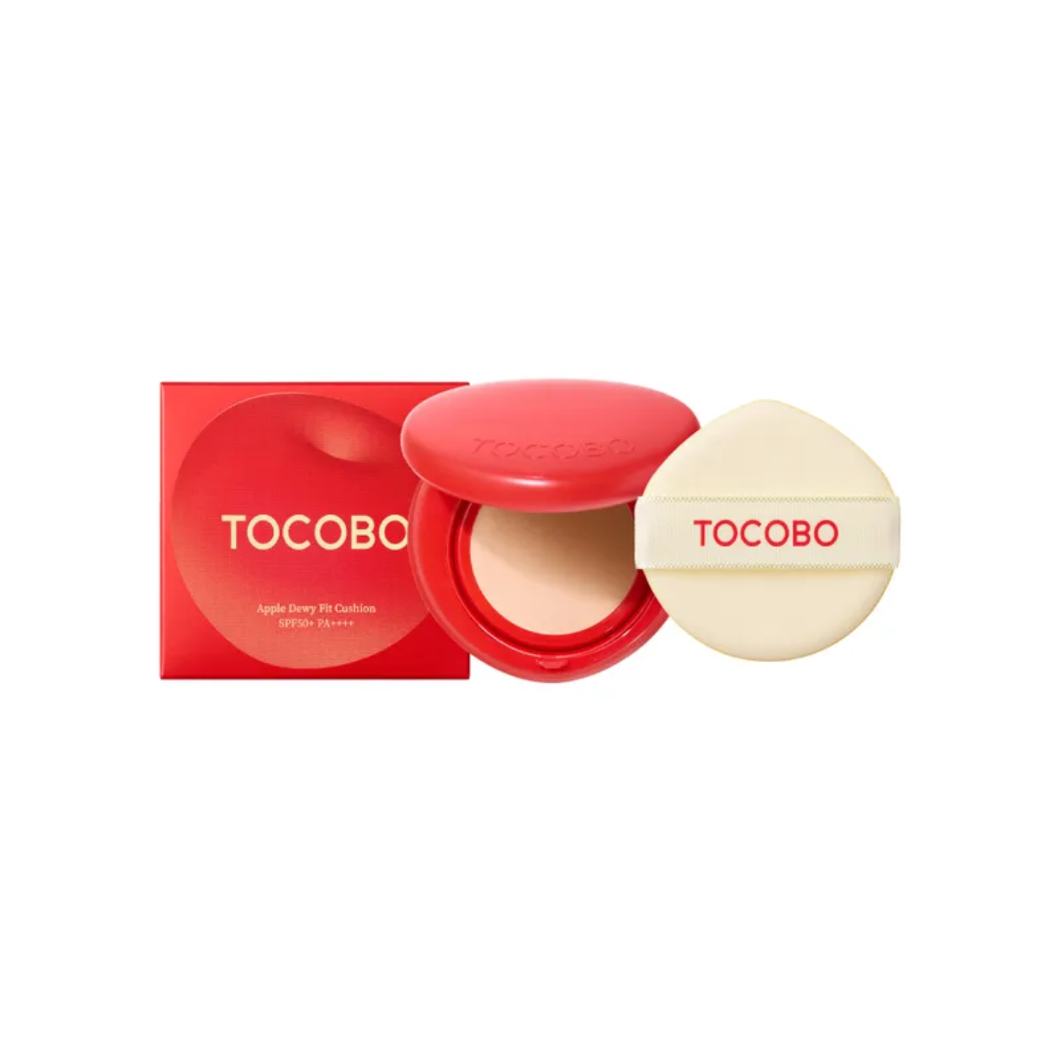 TOCOBO Apple Extract Cushion Foundation. This dewy cushion foundation delivers a radiant, second-skin finish while offering powerful sun protection with SPF50+ PA++++. Infused with apple fruit extract, hyaluronic acid, niacinamide, and panthenol, it deeply hydrates and revitalizes the skin, leaving a moist, glass-skin glow.